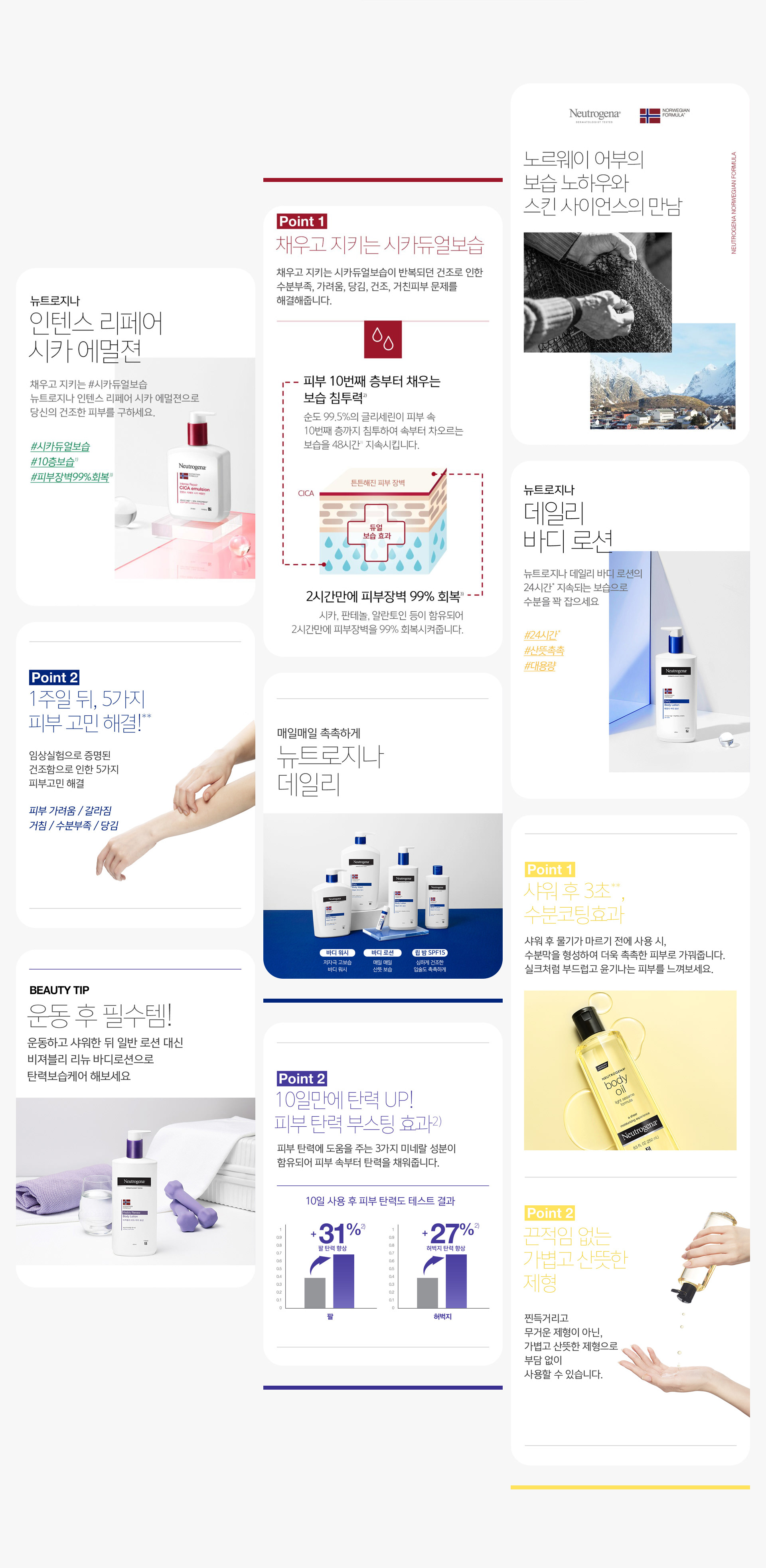 뉴트로지나 온라인 제품 마스터 & 상세페이지 비쥬얼 기획 & 컬러칩 제안 및 디자인